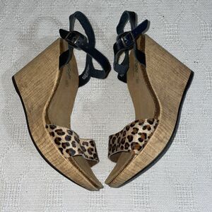 Biostep Spain Women’s Wedge Sandals Size 41 U.S. 9.5 M Black Leopard Print Beach
