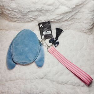 Eeyore may be glum, but you'll be smiling with this Winnie the Pooh coin purse! Designed like the adorable donkey, this figural accessory features embroidered facial details and 3D ears. Don't miss the pink striped wristlet strap and tail charm with a pink bow - perfect for taking on the go.
