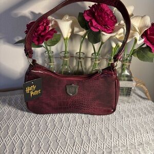Bioworld Harry Potter Gryffindor Croco Handbag With Metal Badge. Wine color.