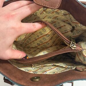 This cool handbag is made of faux leather, a completely synthetic material of high quality that imitates the texture of leather. It measures 24 centimeters long by 33 centimeters high, including its handles. It's brown, with the sides in navy blue. It's the same color as Newt's coat in the movies! In one of its sides we find a plaque with the initials of Newt Scamander (the same ones that appear in his suitcase), while in the other one there is another plaque with the official logo of Fantastic Beasts. The inside of the bag closes with a practical zipper located at the top. In addition, it has a clip closure for greater security. It's an official license of Fantastic Beasts and has been manufactured by Bioworld.