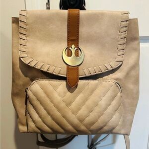 Star Wars Rey cosplay themed backpack from bioworld. Fun detail of the metal rebel alliance symbol and stitching to evoke Rey’s clothes. Backpack straps convert to crossbody. EUC. Perfect for a day at Galaxy’s Edge!