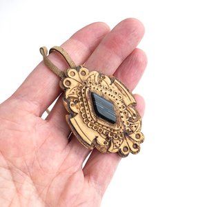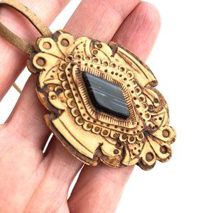 Birch Bark, Black Sardonyx, and Leather Necklace