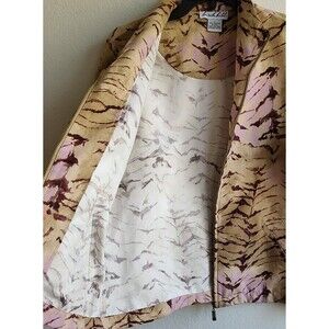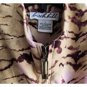 Birch Hill Full Zip Jacket Size L Animal Print Tan Pink Faux Suede Pockets