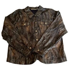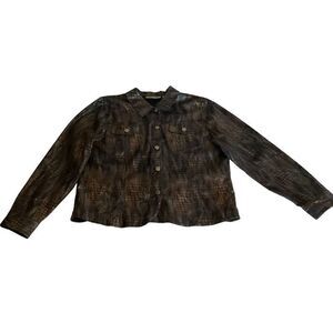 Birch Hill Jacket Iridescent Alligator Brocade Blue Black Gold Brown Collar Button Down Front Long Sleeve Button Cuffs 2 Button Chest Pockets Women Size Large Metallic Iridescent Alligator Snake Animal