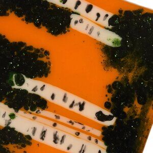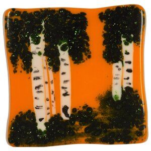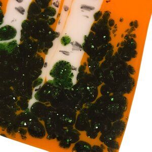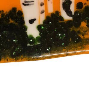 Birch Tree Fused Glass Art Orange Glitter Green Wood Nature Artsy OOAK Vintage