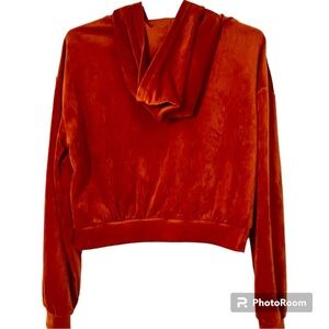 Birch and Stone Burnt Orange Velvet cropped Hoodie sweatshirt and Rhinestones