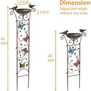 🧿【Elegant Design 3 in1】It features 2 decorative metal birds and a bowl as the bird bath at the top can attract birds here to take a bath. 4 bright-colored butterflies on the trellis create a conducive environment for climbing flowers. It also can be left unadorned to lend sculptural interest to garden, flower bed or border.