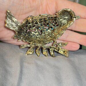 ✨ Large blue rhinestone bird brooch with dimensional open metalwork body