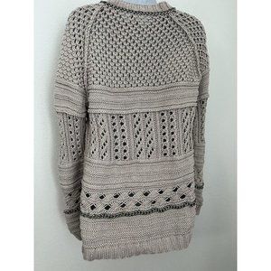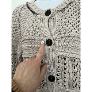 Bird By Juicy Couture Womens Tan Chunky Knit Cardigan Sweater Size M Chains