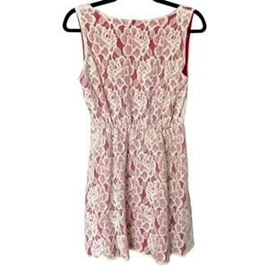 Bird Cage Anthropologie Red + Cream Lace Mini Dress Size Large