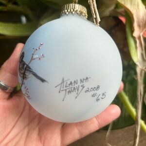 Limited edition 2008 ornament, #65. Hand-painted bird ornament. Signed and dated by artist. A beautiful addition to your Christmas tree or to stand alone hanging on an ornament display stand. Painted by Montello, WI retired fine artist, Alanna Thays. New/never used. Limited edition.
