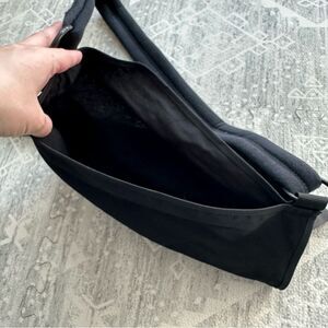 - Lightweight sling pouch with soft laminated foam shoulder and waist straps