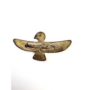 Eagle brooch pin abstract design, made with an enamel on the front and silver backing, which also has a hole so it can be worn as a pendant. Native American design. Two inches long.