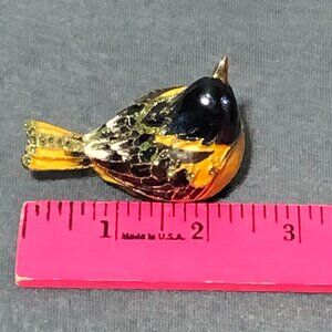 Bird Enameled Trinket box Black Head Yellow Wings Bejeweled