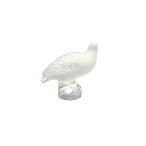 This beautiful Lalique Crystal Partridge Quail figurine is a stunning addition to any collection. The exquisite craftsmanship and attention to detail make this piece a true work of art. The clear crystal glass intricate bird design make it a lovely decorative item for any home.