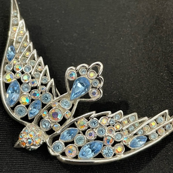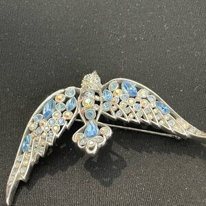 This is a vintage rhinestone bird brooch, likely mid-20th century (circa 1950s–1960s). Replica of highly valued “Bird in Flight”