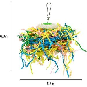 🧿Best toys: The Parrot Cage Shredder Toy is entertaining onto to keep birds busy for a long period and they do enjoy playing with it as it is stuffed with crinkly paper.