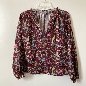 Bird Print Blouse J.Crew Point Sur Popover in Menagerie Print XS