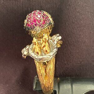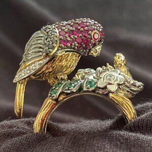 Beautiful rhinestones cover this well-crafted momma bird feeding her 3 babies in the nest—14k gold over Sterling Silver. Brilliante jewelry was primarily created by Victoria Weick. It was sold exclusively on Shop NBC. Pictures cannot show the incredible detail of the ring.
