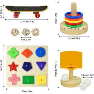 🧿【Package Content】 Bird Toys Sets include Bird Skateboard×1,Wooden block puzzles Toy ×1,Bird basketball toy×1,Bird stacking toy×1,Sepak takraw×3, 5pcs difference type bird entertaining toys to meet your various needs for parrots.