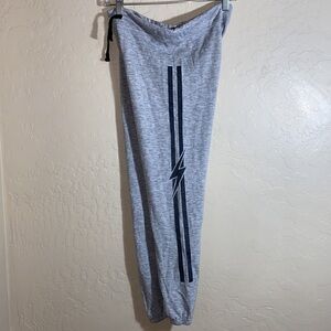 Bird & Vine Los Angeles grey lightning bolt joggers. Graphic down left leg. Drawstring waist. Lightweight. Modal and spandex blend. Size XS