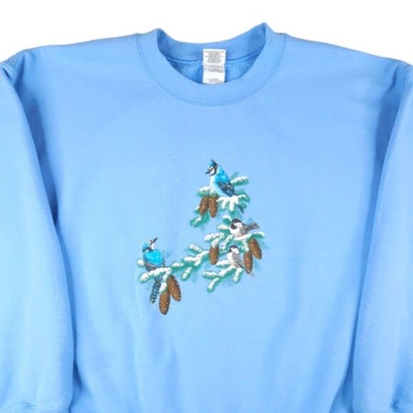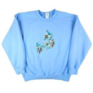Bird Watching Sweatshirt Mens Size Large Blue Jays Chickadees Nature Animal