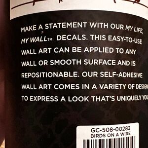 Size : 23.62” x 12.59” birds in a wire design by MY LIFE MY WALL DECAL. Coloring of birds is chocolate brown-burgundy tone.