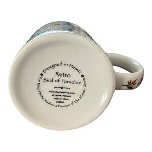 This porcelain china mug features a vivid bird of paradise flower design and is marked "Hawaii" on the bottom—making it a lovely tropical-themed souvenir or collectible. Estimated to date from the late 1990s to early 2000s, this durable mug is both dishwasher and microwave safe.