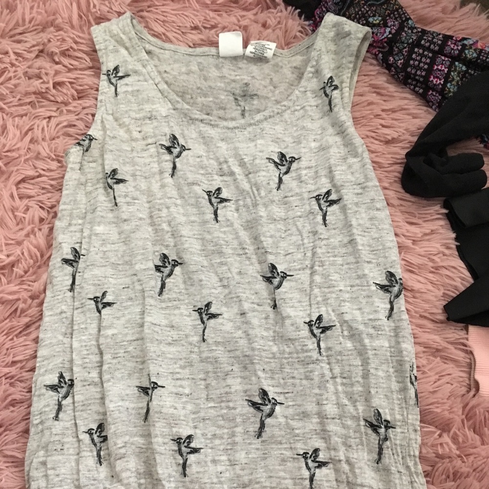Super cute and comfy Razorback with bird pattern. Size is XS but fits like a S