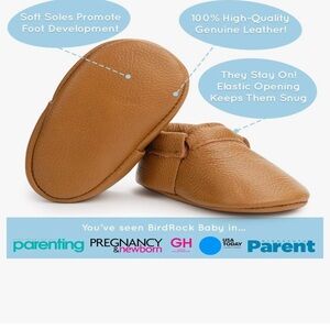 BirdRock Baby Fringeless Moccasins Genuine Leather Boys Shoes, Infants Size 5.5