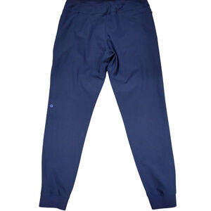 Women's XL Birddogs jogger pants in blue with a drawstring closure. Made of comfortable microfiber polyester fabric with a high rise and lined interior. Features adjustable waist, pockets, and a logo accent. Suitable for casual occasions in winter, fall, and spring. The pants have a solid pattern, tapered leg style, and a theme related to dogs. Machine washable for easy care.