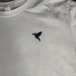 Front design: Small navy Birddogs bird silhouette logo at left chest