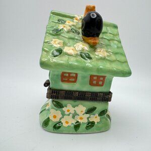Birdhouse Daisy Flower Porcelain Hinged Green Trinket Box Yellow Bird Snail 2.5"