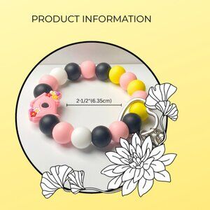 Brighten your day with this sweet silicone wristlet featuring a pink birdhouse charm, butterfly accent, and pastel beads. Made with durable materials and a heart-shaped keyring, it’s a cute and practical way to keep your keys close and your hands free.