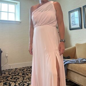 Blush colored Kira dress with Slit. Dry cleaned with no stains or rips, NO ALTERATIONS were made.