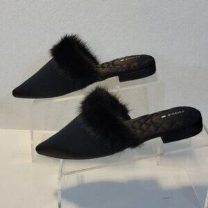 Experience ultimate comfort with Birdies' black slippers, featuring a luxurious fur trim and a soft, suede-like finish. These cozy slip-ons are perfect for indoor relaxation, offering a stylish and snug fit.