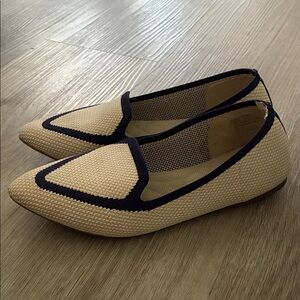 Chic and versatile loafers by Birdies. Beige with navy accents. Ideal for casual wear. Washable.
