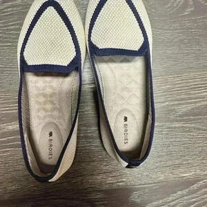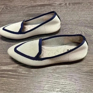 Birdies Blackbird Eggshell Womens 5.5 Navy Knit Point Toe Slip On Flats Shoes