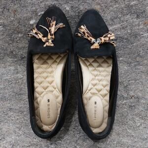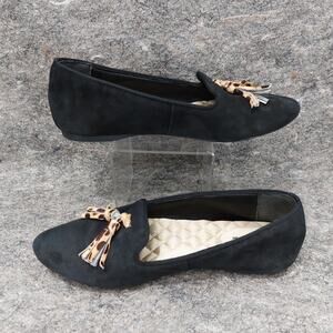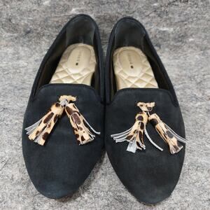 Birdies Blackbird Flats Women's Black Suede Slip On Cheetah Tassel Size 6.5 Glam