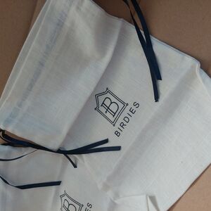 Elegant Birdies dust bags. Cream fabric with black ties. Ideal for shoes or accessories.