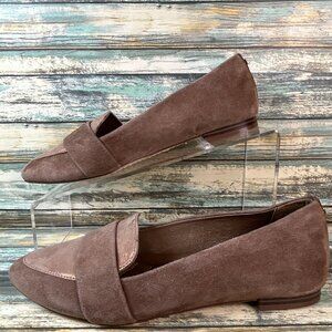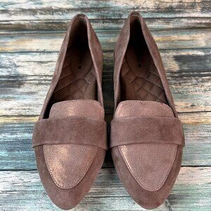 Birdies Loafers Size 6.5 Brown Suede Pointed Toe Dress Flats Shoes Metallic Toe