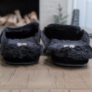 Birdies Phoebe Black Velvet Faux Fur Lined Mule Slippers Sz 6.5