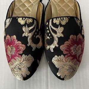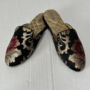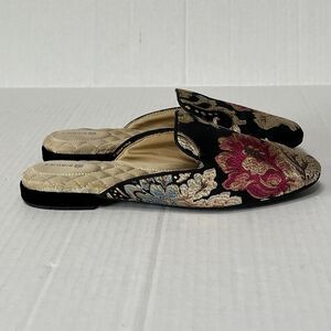Birdies Phoebe Embroidered Floral Jacquard Slipper Mules Flats in Black Size 8.5