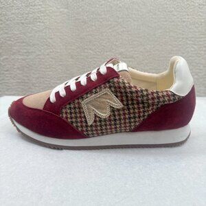 Birdies Roadrunner Sneaker in Primary Plaid Suede Maroon Red Size 10.5 Brand New