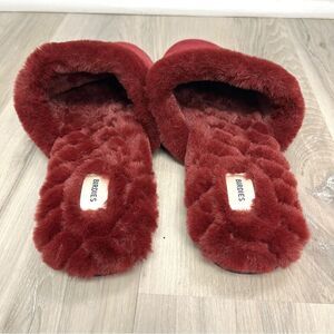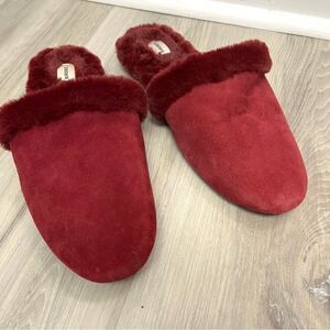 Excellent used Condition Women’s Birdies The Songbird Merlot Ruby Red Suede and Fur Slip On Mule Slipper Flats in Size 7.5