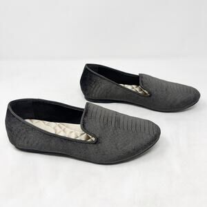 [Birdies] Starling Charcoal Gray Python Print Velour Slip On Loafer Flats Sz 6.5