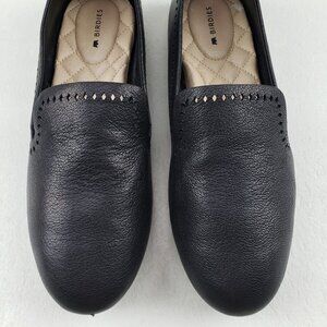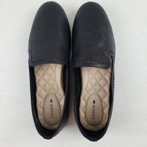 Birdies Starling Leather Loafer Flat Women 8 Black Laser Cut Slip On Casual Shoe