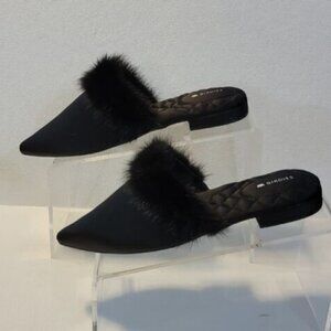 Birdies The Dove Onyx Black Women's Slip On Mink Fur Pointed Toe Mules Shoes