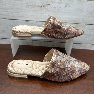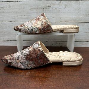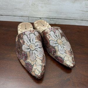 Birdies The Dove Women's Floral Sequins Slip On Slippers Size 7 Pink Metallic
