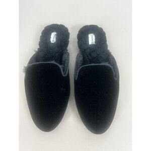 Birdies The Phoebe Black Velvet Faux Fur Lining Mule Flats Slippers Shoes Size 8